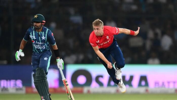पाकिस्तानको नेशनल स्टेडियम कराँचीमा भएको खेलमा टस हारेर पहिले ब्याटिङ गरेको पाकिस्तानले निर्धारित २० ओभरमा ४ विकेट गुमाउँदै १६६ रन बनाएको थियो । पाकिस्तानका लागि मोहमद रिजवानले ८८ रनको अर्धशतकीय पारी खेले भने कप्तान बाबर आजमले ३६ रन बनए । त्यस्तै शान मसोद २१ रन बनाई आउट भए भने असिफ अलि १३ रनमा अविजित रहे । इंग्ल्यान्डका लागि रिसी टोप्लेले २ विकेट लिए भने लियाम डसनको भागमा १ विकेट रह्यो ।