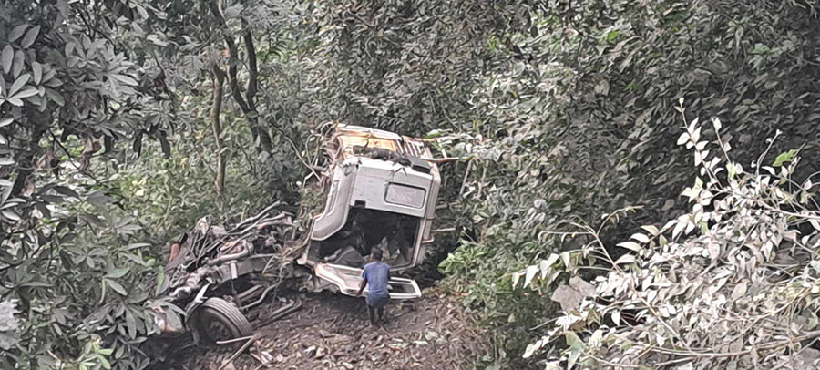 सडकबाट तल खसेको गाडीको केही भाग भीरमा अड्किएको छ । सो क्षेत्र नजिकैका वासिन्दालाई आवश्यक सतर्कता अपनाउन अनुरोध गरिएको छ ।