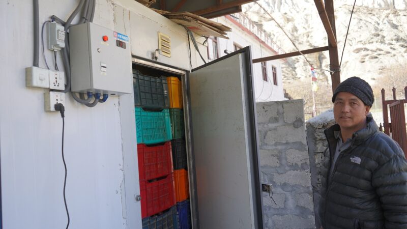 मुस्ताङमा कृषि ज्ञान केन्द्र, प्रधानमन्त्री कृषि आधुनिकीकरण परियोजनाको स्याउ जोन र स्थानीय तहहरुले करिब तीन सय मेट्रिक टन क्षमताको दशवटा चिस्यानगृह निर्माण गरेका छन् । सबै चिस्यानगृहमा बेमौसममा बेच्नका लागि स्याउ राखिएको छ ।