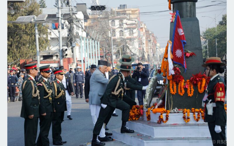 राष्ट्रपति रामचन्द्र पौडेलले ३०३ औँ पृथ्वी जयन्ती तथा राष्ट्रिय एकता दिवस अवसरमा सिंहदरबारको मूलगेट अगाडि रहेको पृथ्वीनारायण शाहको सालिकमा माल्यार्पण गर्नुभएको छ ।