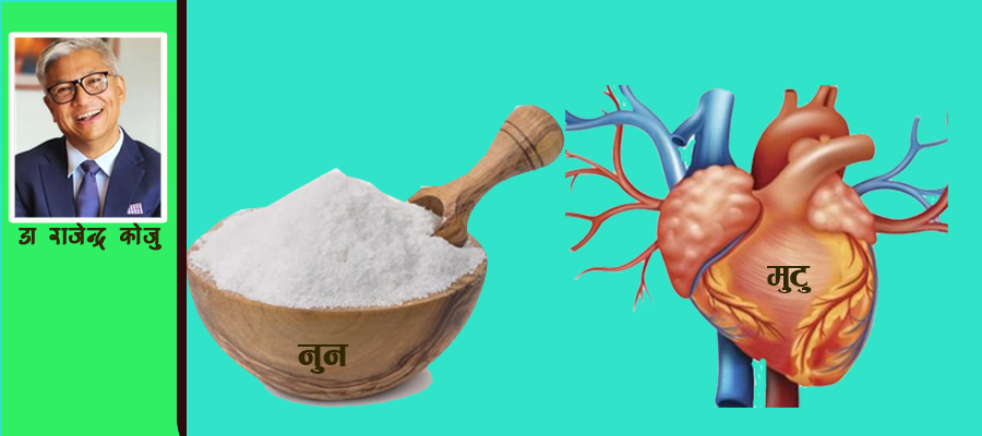 नुन र मुटुरोग बीचको सम्बन्ध धेरै अध्ययनहरूद्वारा पुष्टि भएको छ । नुनमा सोडियमको मात्रा धेरै हुन्छ । अत्यधिक सोडियमले शरीरमा पानी थुप्रिने (पानी धारण गर्ने) समस्या उत्पन्न गराउँछ, जसले गर्दा रक्तचाप बढ्छ । रक्तचापले मुटु र रक्तनलीहरूको स्वास्थ्यमा प्रतिकूल प्रभाव पार्न सक्छ । उच्च रक्तचाप (हाइपरटेन्सन) मुटु रोगको प्रमुख जोखिम कारक हो । नेपालमा हृदय रोग मृत्युको प्रमुख कारणमध्ये एक हो । उच्च रक्तचाप र यसका कारण मुटु रोग हुने समस्या नेपालमा तीव्र रूपमा बढ्दै छ । डब्लुएचओका अनुसार, नेपालमा लगभग ३० प्रतिशत वयस्क जनसङ्ख्या उच्च रक्तचापको जोखिममा छ ।
