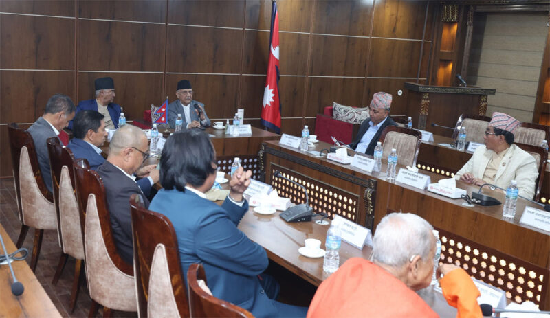 बैठकमा प्रधानमन्त्री ओली, नेकपा (एमाले) का वरिष्ठ उपाध्यक्ष ईश्वर पोखरेल, नेपाली कांग्रेस सभापति शेरबहादुर देउवा, नेता कृष्ण सिटौला, माओवादीका वरिष्ठ उपाध्यक्ष नारायणकाजी श्रेष्ठ, उपाध्यक्ष पम्फा भुसाल, उपमहासचिव बस्नेत, पूर्वप्रधानमन्त्री डा भट्टराई, जसपा नेपालका अध्यक्ष उपेन्द्र यादव, लोसपा अध्यक्ष महन्थ ठाकुर, जसपाका अध्यक्ष अशोक राई, जनमत पार्टी अध्यक्ष सीके राउत, जनमोर्चाका चित्रबहादुर केसीलगायत सहभागी हुनुहुन्थ्यो ।