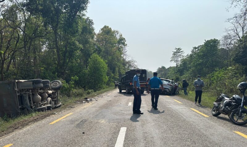 पूर्वपश्चिम राजमार्गअन्तर्गत बाराको जितपुरसिमरा उपमहानगरपालिका–१६ भुइँपुलस्थित सडकमा शुक्रबार टिपर र कार एकापसमा ठोक्किँदा दुई जनाको मृत्यु भएको छ ।