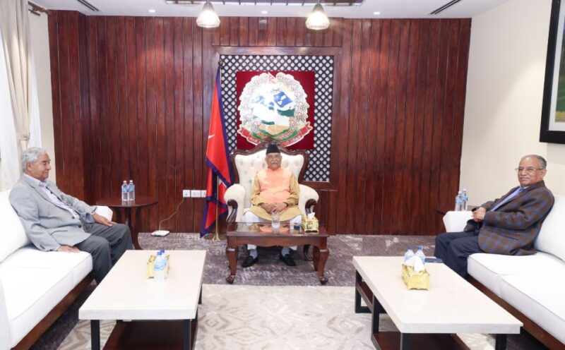 प्रधानमन्त्री केपी शर्मा ओलीसहित प्रमुख तीन राजनीतिक दलका शीर्ष नेताहरूबीच विद्यमान राजनीतिक व्यवस्था र सङ्घीय लोकतान्त्रिक गणतन्त्र नेपालको संविधान रक्षाका लागि उपयुक्त वातावरण बनाउँदै अघि बढ्ने विषयमा आज छलफल भएको छ ।