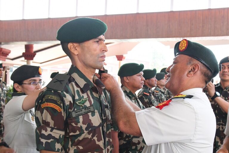 प्रधान सेनापति अशोकराज सिग्देलले नेपाली सेनामा साधारण सेवातर्फमा सहायक सेनानी पदमा बढुवा भएका प्रमुख सुबेदार-सुबेदारहरूलाई दज्र्यानी चिह्न प्रदान गर्नुभएको छ ।