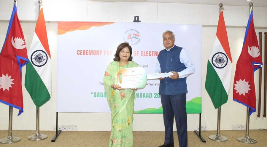 नेपाल सरकारले आगामी जेठ २ देखि ४ गतेसम्म आयोजना गर्न लागेको सगरमाथा संवादमा सहयोगस्वरुप भारत सरकारले १५ वटा विद्युतीय सवारीसाधन उपलब्ध गराएको छ ।