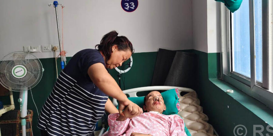 त्यो कोमामा पुगेको शरीर हो, तेजबहादुर सिञ्जाली मगरको । कमलामाई नगरपालिका–७ पल्लो रामपुरमा उहाँको स्थायी बसोबास छ । दुई वर्ष दुई महिना बित्नै लाग्यो, उहाँ अस्पतालको शय्याबाट उठ्न सक्नुभएको छैन । बिरामी तेजबहादुरका साथमा श्रीमती विमला रमौली हुनुहुन्छ । तेजबहादुरको स्याहार–सुसार र पालन–पोषण उहाँकै भरमा छ । बिरामी श्रीमान्को पीडामा पिरोलिएकी विमला छेवैमा बसेर नाडी समाउनु हुन्छ । मुहार सुम्सुम्याउनु हुन्छ ।