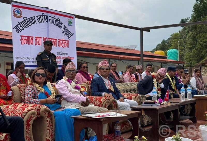 पालिकास्तरीय सार्वजनिक सुनुवाई र ज्येष्ठ नागरिक, उत्कृष्ट नतिजा प्राप्त गर्ने विद्यार्थी तथा विद्यालयलाई सम्मान गरेको हो । १० वटा वडा रहेको पालिकामा ८० वर्ष पुगेका ४८० ज्येष्ठ नागरिकलाई ब्ल्याङ्केट, इलेक्ट्रिक जग र थर्मस प्रदान गर्दै सम्मान गरिएको प्रमुख प्रशासकीय अधिकृत रामकुमार कार्कीले जानकारी दिनुभयो ।