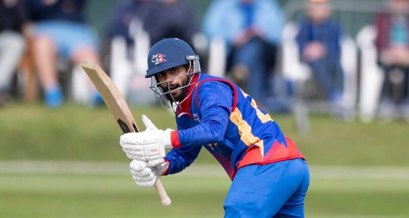 नेपालका लागि आरिफ शेखले सर्वाधिक ८४ रनको योगदान दिए । उनले ८५ बलमा सात चौका र दुई छक्काको मद्दतमा ८४ रन बनाएका हुन् । यसैगरी भीम सार्की र कप्तान रोहितकुमार पौडेलले समान ३५/३५ रन बनाए । यस्तै, कुशल भुर्तेलले १८, दीपेन्द्रसिंह ऐरीले १६, बसिर अहमद र करण केसीले समान ११/११ तथा नन्दन यादवले १० रन बनाए । सन्दीप लामिछाने दुई रन जोड्दै आउट भए ।