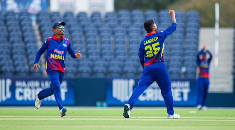 यसैगरी भीम सार्की र कप्तान रोहितकुमार पौडेलले समान ३५/३५ रन बनाए । यस्तै, कुशल भुर्तेलले १८, दीपेन्द्रसिंह ऐरीले १६, बसिर अहमद र करण केसीले समान ११/११ तथा नन्दन यादवले १० रन बनाए । सन्दीप लामिछाने दुई रन जोड्दै आउट भए ।