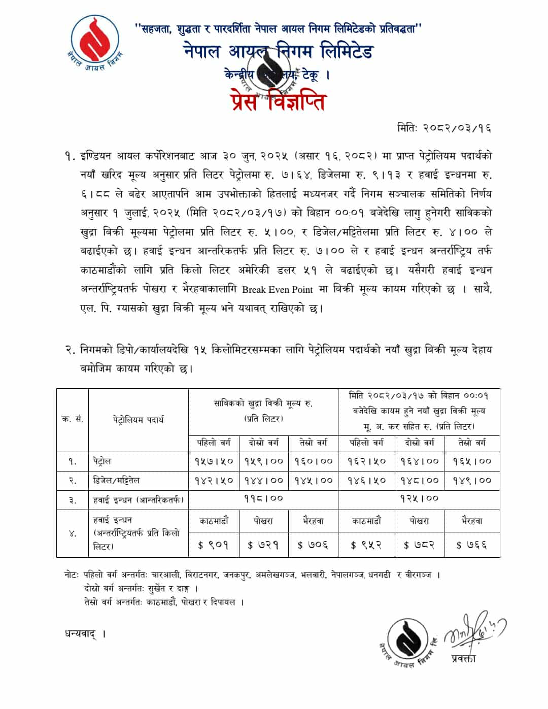 यस्तै, हवाई इन्धन अन्तरराष्ट्रियतर्फ प्रतिकिलोलिटर अमेरिकी डलर ५१ ले वृद्धि भएको निगमले जनाएको छ ।