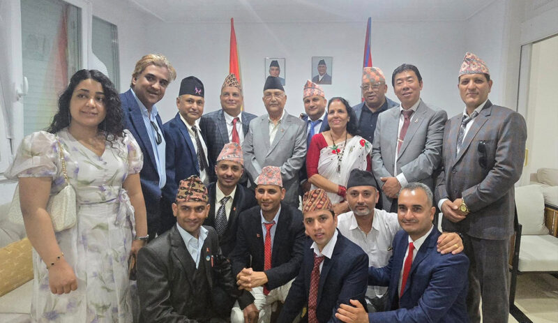 स्पेनका लागि नेपाली राजदूतको निवासमा भएको भेटमा एमाले निकट मञ्चका पदाधिकारीहरूले प्रधानमन्त्री ओलीलाई स्पेनमा स्वागत र सम्मानसहित प्रधानमन्त्री ओलीको नेतृत्वमा नेपालमा भइरहेको विकास र समृद्धिको यात्राको सफलताको कामना पनि गर्नुभएको छ ।