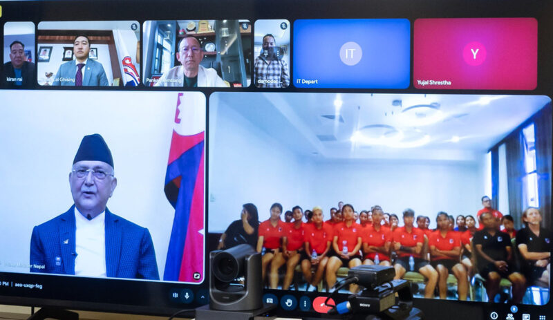 स्पेनको औपचारिक भ्रमणबाट स्वदेश फर्किएलगत्तै नियमित काममा व्यस्त रहनुभएका प्रधानमन्त्री ओलीले आज प्रधानमन्त्री निवास, बालुुवाटारबाट ‘भर्चुअल’ माध्यमबाट सफलताको शुभकामना दिइरहँदा खेलाडीहरु उज्वेकिस्तानबाट जोडिएका थिए ।