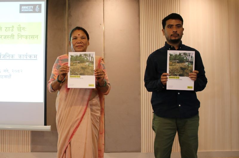 एम्नेस्टीका निर्देशक निराजन थपलियाले प्रतिवेदनको मुख्य विषय प्रस्तुत गर्दै खासगरी अनुसन्धानमा पाँचवटा जबरजस्ती निष्कासनका घटनालाई प्रतिनिधिमूलक घटनाका रूपमा अभिलेख गरिएको जानकारी दिनुभयो ।