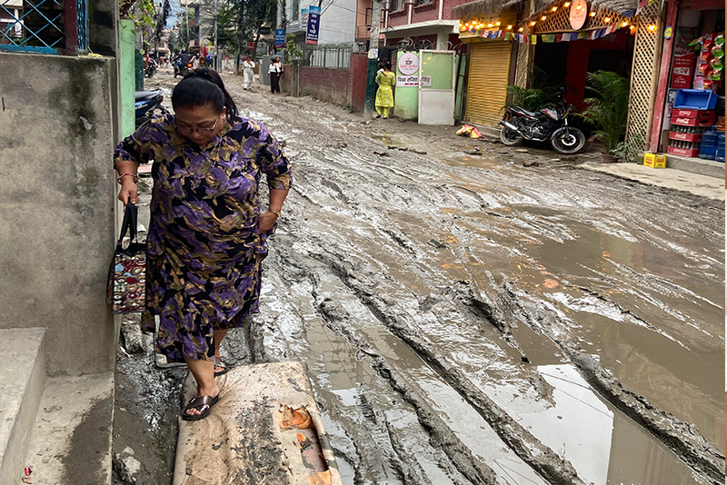 “५० वर्षअघि राखिएको छ इन्चको ढल प्रतिस्थापन गरी हाल ४२ इन्चको ठूलो ढल राखिएको छ । खानेपानीको पाइप र बिजुलीका तार एकैसाथ बिछ्याउने तयारी भएको हुँदा यस्तो भएको हो”, उहाँले भन्नुभयो,“पाइप, ढल राख्न सडक खन्नै पर्यो । हिलोमा ग्राभेल गर्न सकिँदैन । स्थानीयलाई गाह्रो भएको छ, तर अरू उपाय छैन । तीन–चार महिनापछि त पहिलेको भन्दा राम्रो सडक बनिहाल्छ नि !”(रासस)