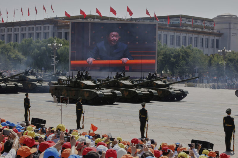 अर्कोतर्फ चीनले सेप्टेम्बर ३ मा टोकियो खाडीमा अमेरिकी युद्धपोतमा औपचारिक आत्मसमर्पण गरेको भोलिपल्ट परेडका साथ आफ्नो सैन्य शक्ति प्रदर्शन गर्दछ । जापानले दोस्रो विश्वयुद्ध अघि र त्यस समयमा विनाशकारी र क्रूर आक्रमणमा चीनको धेरै भाग कब्जा गरेको थियो, जसमा केही अनुमान अनुसार दुई करोड मानिस मारिएका थिए । युद्धकालको अनुभवले आज पनि दुई देशबीचको सम्बन्धलाई समस्यामा राखेको छ ।