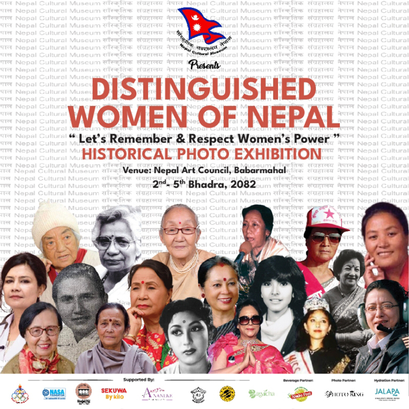 सांस्कृतिक संग्रहालय नेपाल र नेपाल ओलम्पिक म्यूजियमको आयोजनामा यही भाद्र २ गतेदेखि काठमाडौंमा नेपालका विशिष्ट महिलाहरुको फोटो प्रर्दशनी हुने भएको छ ।