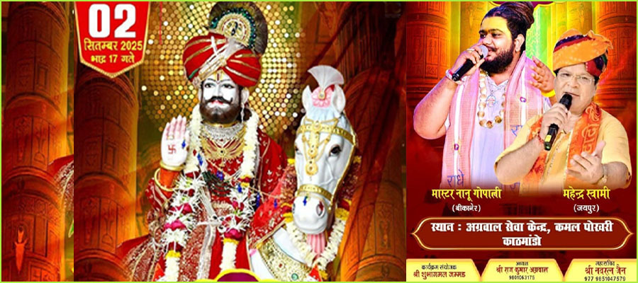 काठमाडौंको कमलपोखरीस्थित अग्रवाल सेवा केन्द्रमा द्वारिकाधीश अवतार रामदेबेराको भगवान श्री रामदेवजीको भजनोत्सव कार्यक्रम आयोजना हुने भएको छ।