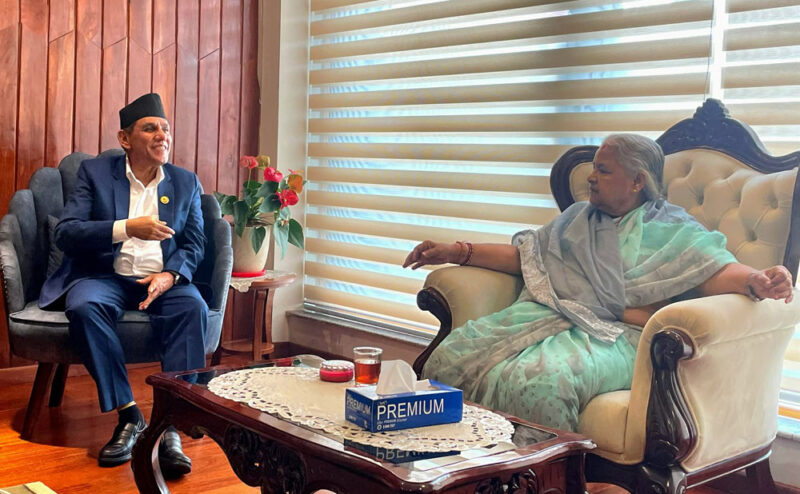 राष्ट्रियसभाका अध्यक्ष नारायणप्रसाद दाहालले प्रधानमन्त्री सुशीला कार्कीसँग भेट गरी बधाई तथा कार्यकाल सफलताको शुभकामना दिनुभएको छ ।