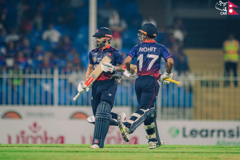 संयुक्त अरब इमिरेट्सको शारजाह क्रिकेट मैदानमा आज टस हारेर पहिला ब्याटिङ गरेको नेपालले १९ दशमलव पाँच ओभरमा सबै विकेट गुमाएर १ सय २२ रनको योगफल बनाएको हो ।
