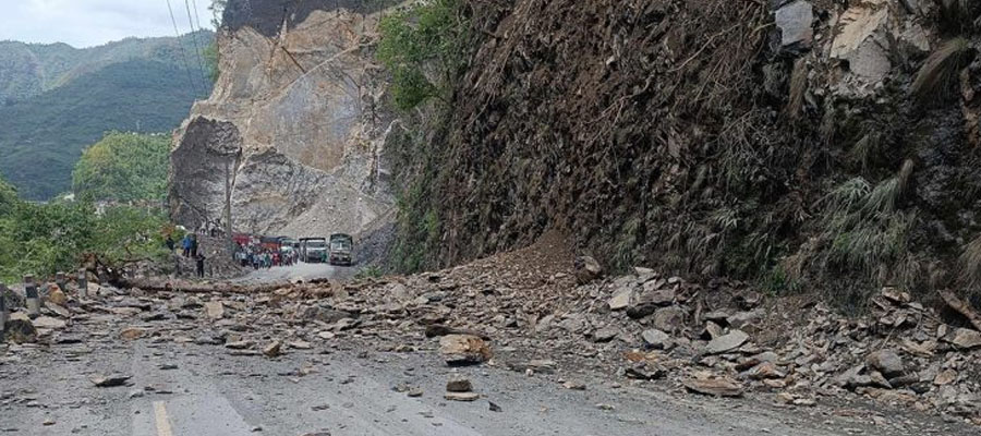 पानी परिरहेको र ढुङ्गा-माटो झर्ने क्रम जारी रहेकाले उच्च जोखिम भने कायम रहेको प्रहरी जनाएको छ ।