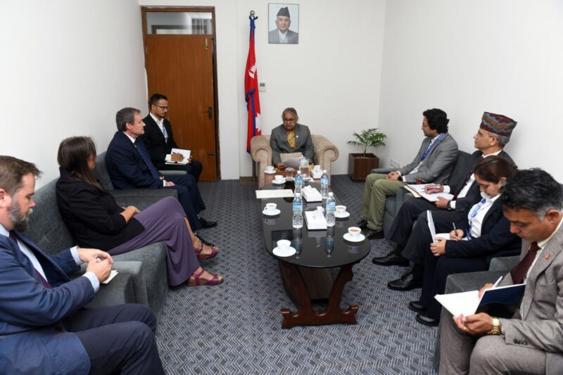 प्रधानमन्त्री सुशीला कार्कीसँग नेपालका लागि संयुक्त अधिराज्य बेलायतका राजदूत रोब फेन नेतृत्वको प्रतिनिधिमण्डलले शिष्टाचार भेट गरेको छ ।