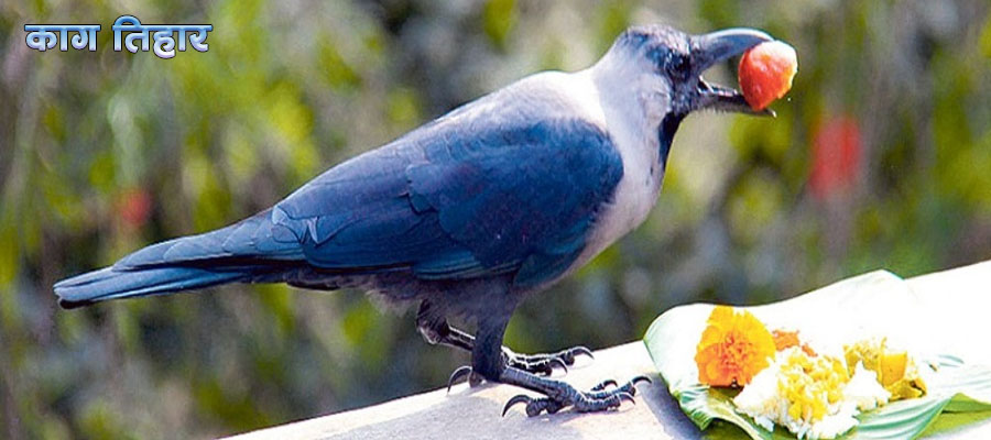 प्रत्येक वर्ष कार्तिक कृष्ण त्रयोदशीका दिनमा मनाइने काग तिहार पर्व आज बिहान यमराजको दूतका रूपमा कागलाई मीठोमीठो चिजबीज खान दिएर मनाइँदैछ ।