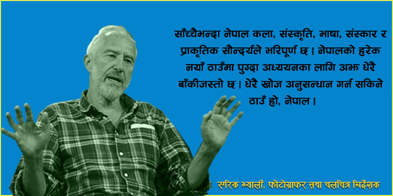 नेपाल मेरो ‘लभ एट फ्रस्ट साइट’ हो । एक शब्दमा भन्दा, प्रेम । पहिलोपटक म सन् १९७३ मा नेपाल आएको थिएँ । बनारसी बाटो हुँदै आएको याद छ । हाइकिङ गरेर, ठूलो टाटा ट्रकको छतमा बसेर आएको थिएँ । पहिलोपटक नेपाल भित्रिदै गर्दाको अनुभव म सायदै बिर्सिन सक्छु । यहाँका आर्कषक पाखोबारी, चिटिक्क आकारका रातो र सेतै लिपिएका घरहरु र ती घरहरु पछाडि देखिने अद्भूत हिमालहरुको दृश्यले मेरो मुटुको ढुकढुकी बढेको थियो । झण्डै ५० वर्षअघि यहाँको भूगोल र जीवनशैलीको दृश्यले मेरो ‘लभ एट फ्रस्ट साइट’ बन्यो नेपाल । म फ्रान्सेली नागरिक हुँ । मेरो देश पनि राम्रो छ । धेरै वर्ष फ्रान्सको पट्यारलाग्दो बसाईपछि नेपालसँगको अनुभव मेरा लागि अदभूत बन्न पुग्यो । नेपालको यात्राका क्रममा अप्ठ्यारा र अनौठा लाग्ने बाटाहरु नै रोचक अनुभूतिको सुरुआत बन्यो । नेपाल आइसकेपछि यहाँको संस्कृति मेरा लागि नयाँ संस्कृतिको खानीजस्तो भयो । यो देशसँगको प्रेमानुभूति सधैँ रहिरहनेछ । म अहिले ७३ वर्षको उमेरमा छु । विगतलाई फर्केर हेर्दा यहाँको सबै कुराले मलाई प्रेममा पारिरहेको छ ।
