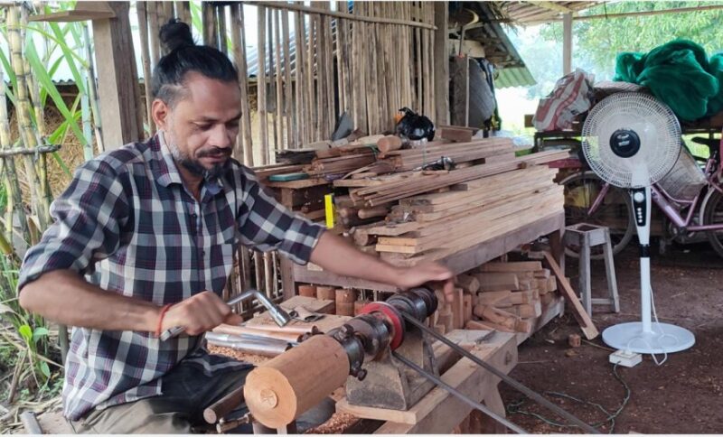 उहाँले दुई वर्षअघिदेखि विजयसालको काठ र बाँसबाट गिलास, जग, बोत्तल, अम्खोरा, कचौरा, फूलदानी, मसलादानी, बेलनालगायत सामग्री बनाउने गरेको बताउनुभयो ।