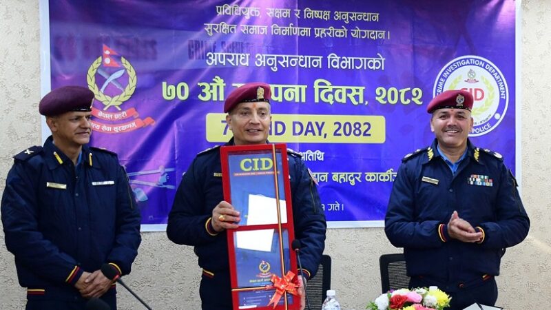 अपराध अनुसन्धान विभागको ७०औँ स्थापना दिवसका अवसरमा आज प्रहरी प्रधान कार्यालयमा आयोजित कार्यक्रममा उहाँले सामाजिक सञ्जालको दुरुपयोग भएसँगै लागूऔषध दुव्र्यसन तथा कारोबार, क्रिप्टोकरेन्सी, अनलाइन गेमिङ, स्क्यामिङ, आत्महत्या, मानव बेचबिखन तथा ओसारपसार, आर्थिक अपराध र अन्तरदेशीय प्रकृतिका जटिल तथा सङ्गठित अपराधसम्बन्धी अनुसन्धानका लागि क्षमता विकास तालिम आवश्यक रहेको बताउनुभयो ।