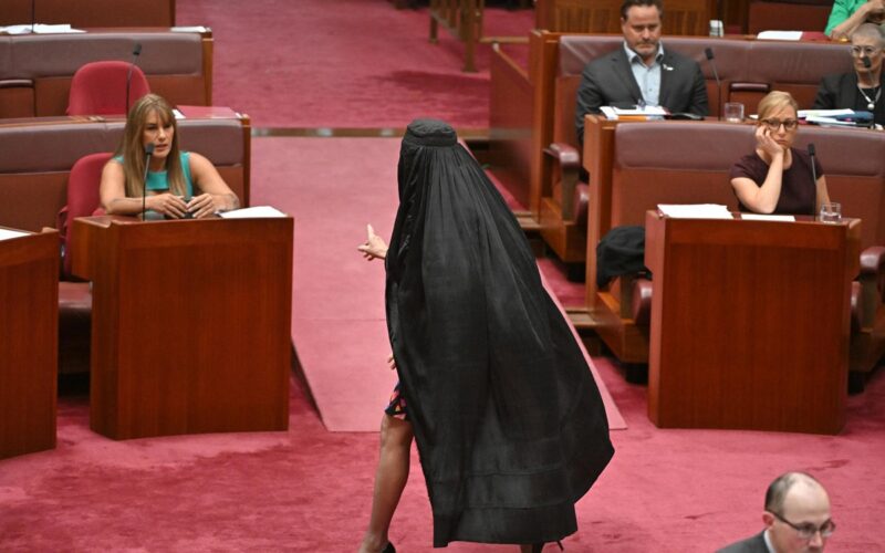 मुस्लिम र आप्रवासनविरोधी विचारका लागि चर्चित वन नेशन पार्टीकी ७१ वर्षीया नेत्री ह्यान्सनले सोमबार आफ्नो ‘सार्वजनिक स्थानमा अनुहार ढाक्ने पहिरन प्रतिबन्ध’ सम्बन्धी प्रस्तावित विधेयकलाई सहकर्मीहरूले अस्वीकार गरेको विरोधस्वरूप टाउकादेखि खुट्टासम्म ढाकिने बुर्का लगाएर सिनेटमा प्रवेश गर्नुभएको थियो ।