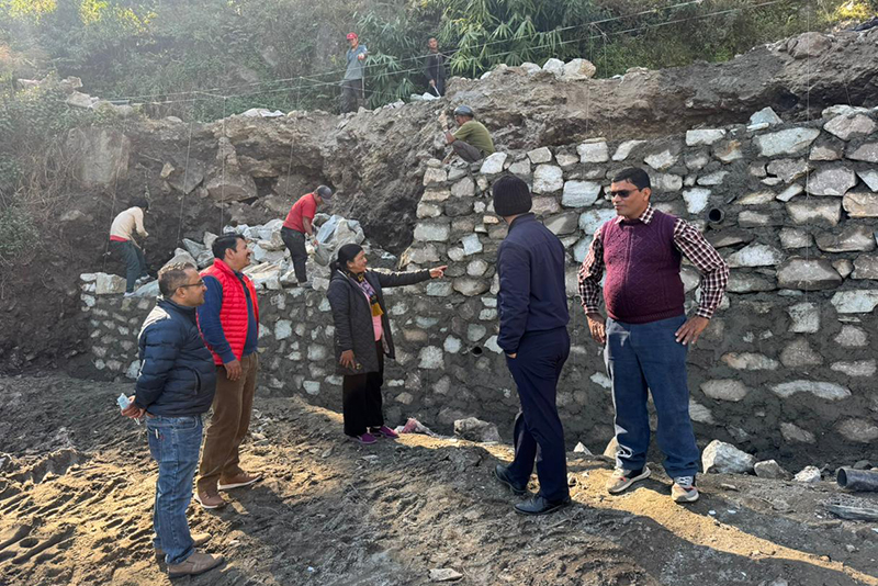 गण्डकी प्रदेशसभा सदस्य हरिबहादुर भण्डारी, जिल्ला समन्वय समितिका कार्यवाहक प्रमुख डिलकुमारी खत्री, पूर्वाधार विकास कार्यालयका प्रमुख डा महेन्द्र बानियाँसहितको टोलीले मापदण्डभन्दा कम चौडाइको पर्खाल भत्काएर नयाँ बनाउन निर्देशन दिएको हो ।