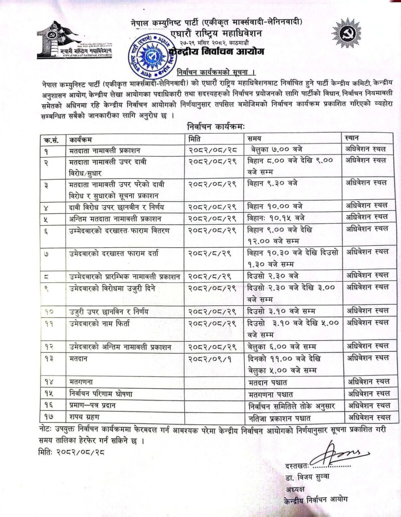 एमाले महाधिवेशनको निर्वाचन कार्यतालिका सार्वजनिक