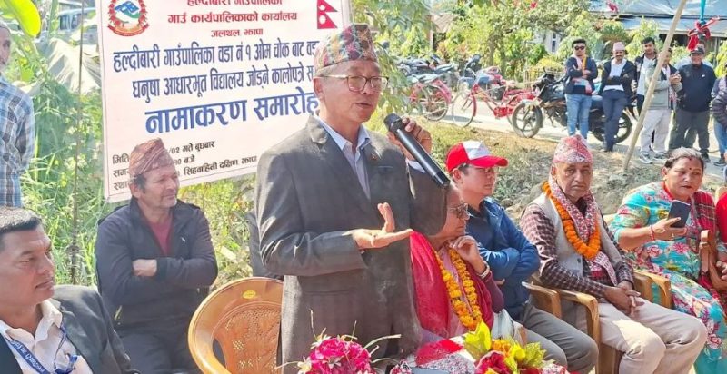 “सात–आठ वर्ष अघि कालोपत्र सडक हेर्न छिमेकी पालिका बिर्तामोड र भारत जानुपर्ने अवस्थाका थियो”, उहाँले भन्नुभयो, “अहिले हल्दिबारीका सबै मुख्य सडकहरू कलोपत्र भइसकेका छन्, यो विकासको चरणअन्तर्गत पर्दछ ।”
