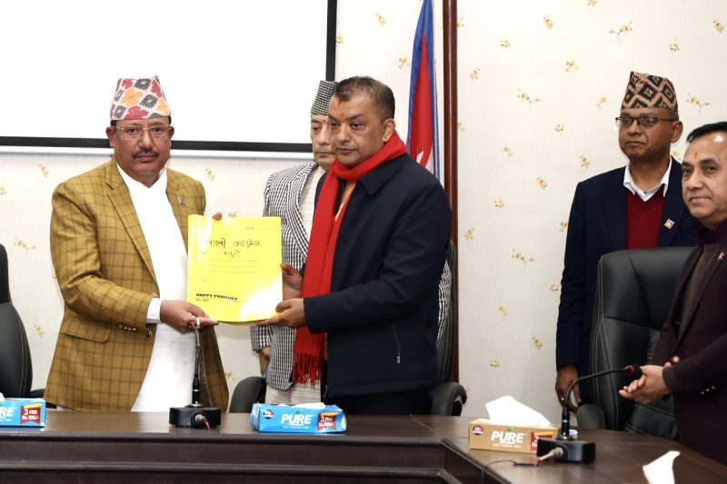 सभापति थापाले आयोगका कार्यवाहक प्रमुख आयुक्त रामप्रसाद भण्डारीलाई दोस्रो विशेष महाधिवेशनबाट पारित भएका नीति तथा कार्यक्रमलगायत दस्तावेज र नव निर्वाचित केन्द्रीय कार्य समितिको विवरणलगायत कागजात पेस गर्नुभएको थियो ।