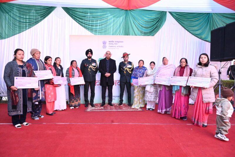 सो अवसरमा कार्यवाहक राजदूत पाण्डेले भारतीय सशस्त्र बलका दिवङ्गत सैनिकका श्रीमती र निकटतम् नातेदारलाई सम्मान गर्नुका साथै रु सात करोड २० लाख बराबरको एजीआइएफ (आर्मी ग्रुप इन्स्योरेन्स फन्ड) चेकहरु हस्तान्तरण गर्नुभएको थियो ।