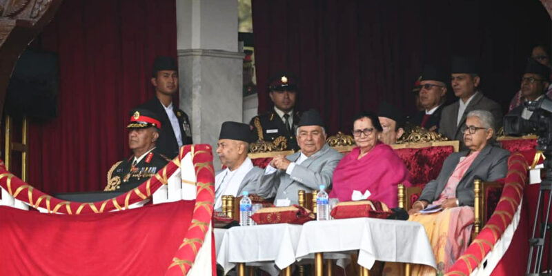 राष्ट्रपति रामचन्द्र पौडेल महाशिवरात्रि तथा २६३औँ सेना दिवसका अवसरमा नेपाली सेनाद्वारा सैनिक मञ्च टुँडिखेलमा आज आयोजित विशेष समारोहमा सरिक हुनुभयो । सो अवसरमा उहाँले त्यहाँस्थित सैनिक स्मारकमा पुष्पहार अर्पण गरी श्रद्धाञ्जली व्यक्त गर्नुका साथै नेपाली सेनाद्वारा अर्पण गरिएको सलामी ग्रहण गर्नुभयो ।