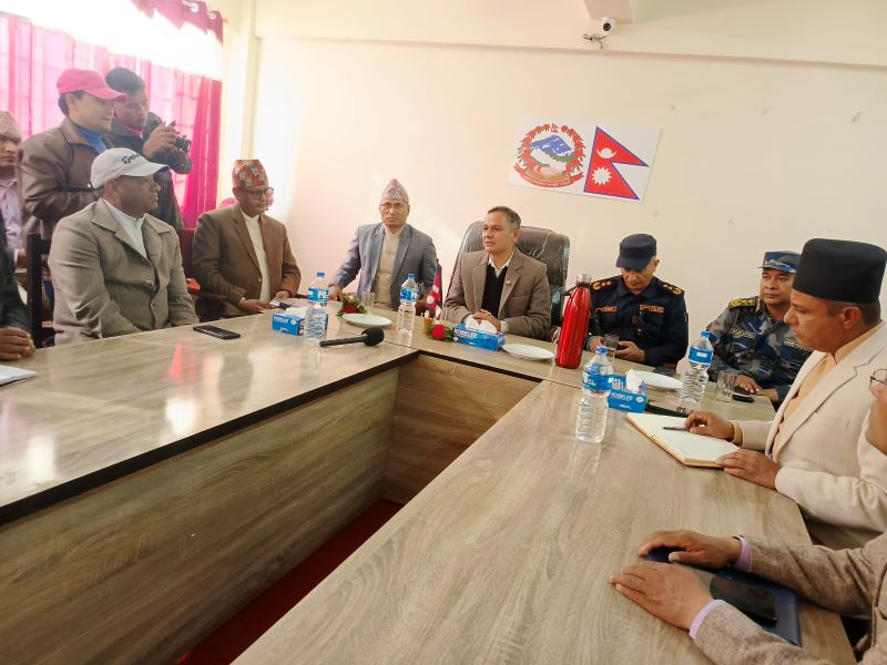 गहृमन्त्री अर्याल तथा गृह सचिव राजकुमार श्रेष्ठ, प्रहरी महानिरीक्षक दानबहादुर कार्की, सशस्त्र प्रहरी महानिरीक्षक राजु अर्यालसहितको टोली जिल्ला आएको प्रमुख जिल्ला अधिकारी डोरेन्द्र निरौलाले जानकारी दिनुभयो ।