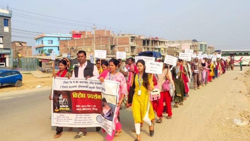 सुर्खेतकी इनिशा विकको बलात्कारपछि हत्या भएको घटनाका दोषीलाई कडा कानुनी कारबाहीको माग गर्दै आज झापाको काँकरभिट्टामा विरोध प्रदर्शन गरिएको छ ।