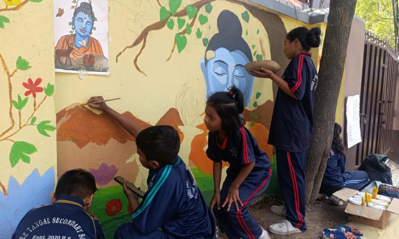 यसैगरी, विद्यार्थीले टङ्गला स्कुलमा पनि भित्ते चित्र बनाएका छन् । पीपलको रूखमुनि गौतमबुद्ध बसिरहेका सुन्दर भित्ते चित्रसहित प्रकृति र जनजीवनका चित्र उनीहरुले बनाएका छन् । विद्यार्थीहरु कला सिर्जना गर्न पाएकामा खुसी र उत्साहित देखिएका छन् । यसले भविष्यमा उनीहरुलाई बाटो देखाउन सहज हुने विश्वास गरिएको छ ।
