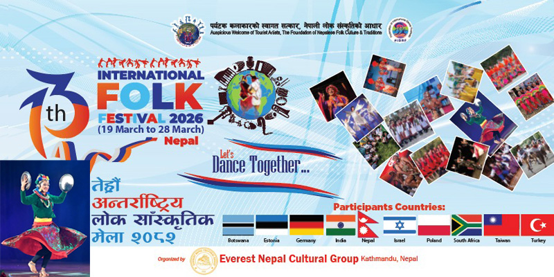 ‘पर्यटक कलाकारको स्वागत सत्कार, नेपाली लोक संस्कृतिको आधार’ भन्ने नारासहित एभरेष्ट नेपाल कल्चरल ग्रुपले ‘तेह्रौं अन्तर्राष्ट्रिय लोक सांस्कृतिक मेला २०८२’ को आयोजना गर्दैछ । विगत धेरै वर्षदेखि नेपाली लोक गीत–सङ्गीत र लोक नृत्यमार्फत् विश्वसामु सांस्कृतिक उन्नयनका हिसाबले नेपाललाई चिनाउँदै र विश्वका लोकभाका र लोक संस्कृतिलाई नेपाली घरआँगनमा प्रस्तुत गर्दै एउटा गौरवमय इतिहास कायम राख्न सफल एभरेष्ट नेपाल कल्चरल ग्रुपले यही चैत्र ६ गतेदेखि १४ गतेसम्म नेपालका विभिन्न शहरहरूमा सांस्कृतिक मेलाको आयोजना गर्दैछ । ग्रुपले एक प्रेस विज्ञप्ति प्रकाशित गरी उक्त कुराको जानकारी गराएको हो ।