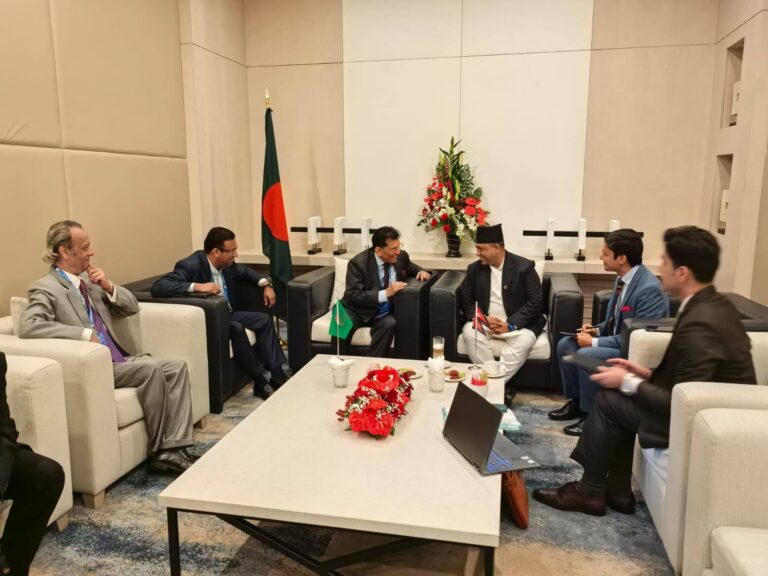 मन्त्री खनाल र बङ्गलादेशका परराष्ट्रमन्त्री खलिलुर रहमानसँग पनि भेटवार्ता भएको छ ।  भेटमा दुई देशबीचको सौहार्दपूर्ण सम्बन्धप्रति सन्तोष व्यक्त गर्दै उहाँहरूले सहयोगका विविध क्षेत्र विस्तार गरी पारस्परिक सम्बन्धलाई अझ सुदृढ बनाउने विषयमा विमर्श गर्नुभएको थियो ।