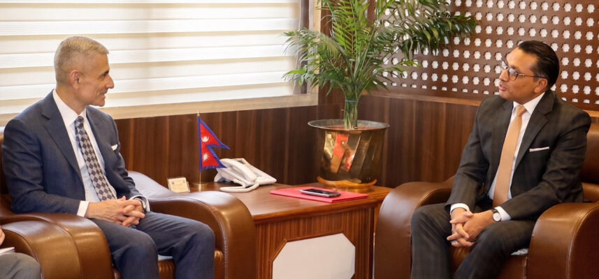 अर्थमन्त्री डा स्वर्णिम वाग्लेसँग संयुक्त राज्य अमेरिकाका सहायक विदेशमन्त्री एसपल कुपरले शिष्टाचार भेटवार्ता गर्नुभएको छ । अर्थ मन्त्रालयमा मंगलबार भएको भेटमा उहाँहरूबीच नेपालमा हालै सम्पन्न निर्वाचनपछि गठित वर्तमान सरकार र अमेरिकी सरकारबीच सम्भावित साझेदारीका क्षेत्र, लगानी प्रवर्द्धन र द्विपक्षीय सहयोगका विषयमा छलफल भएको मन्त्रालयले जनाएको छ ।