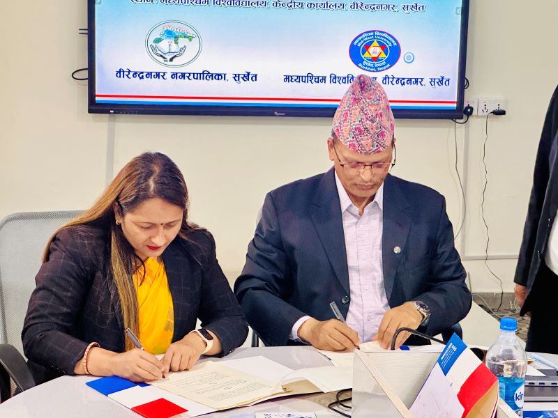 मध्यपश्चिम विश्वविद्यालय र वीरेन्द्रनगर नगरपालिकाबीच रु दुई करोड २२ लाख २२ हजार राशिको अक्षयकोष स्थापनाको सम्झौता भएको छ ।