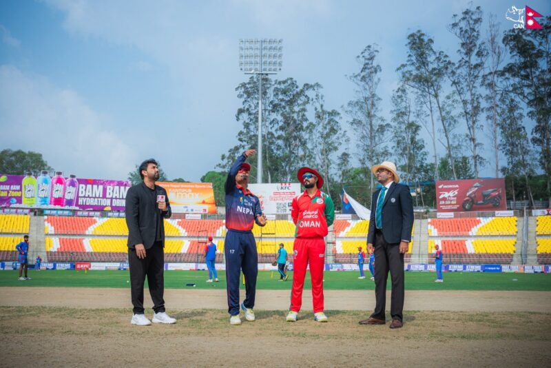 कीर्तिपुरस्थित त्रिवि मैदानमा भर्खरै भएको टसमा ओमानका कप्तान जतिन्दर सिंहले घरेलु टोलीविरुद्ध टस जितेर पहिला ब्याटिङ गर्ने निर्णय लिएसँगै नेपालले पहिला बलिङको निम्तो पाएको हो ।